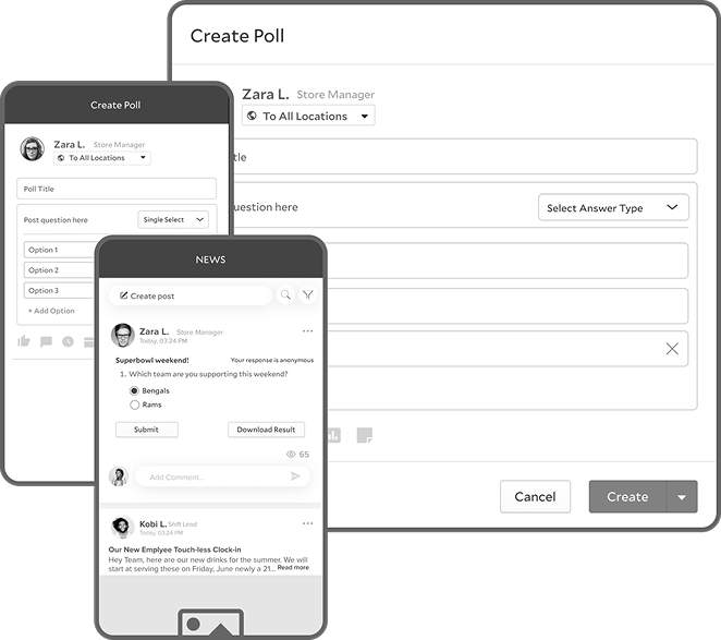 When the user creates a post, the create Post Modal should have an option to create a Poll/ survey.